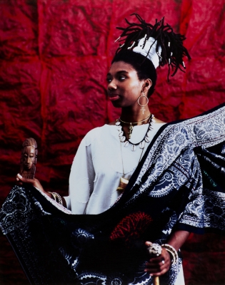 Maud Sulter (1960–2008) was an award-winning artist and writer, curator and gallerist of Ghanain and Scottish heritage who lived and worked in Britain. She exhibited widely and was selected by The British Council to represent Britain at Africus, the Johannesburg Biennale of 1995. Her art has been acquired by numerous private and public collections, including the Scottish Parliament, the Arts Council Collection, the Victoria and Albert Museum, the British Council Collection, the National Galleries of Scotland, the National Portrait Gallery in London, and those collections who have loaned work for this show. She wrote several collections of poetry, and edited a pioneering collection of writings and images, Passion: Discourses on Blackwomen’s Creativity. This was published by the imprint she founded, Urban Fox Press, ‘a revolutionary new press for the more radical 90s’. She was active in the Black feminist and lesbian movements, often inspired by African-American activists, artists and writers. She curated nearly 20 exhibitions, and set up a gallery, Rich Women of Zurich in London’s Clerkenwell.